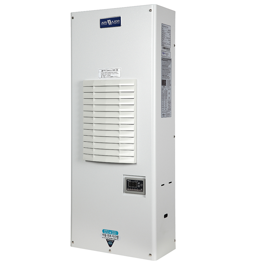 설비의 자동화 및 고집적화에 따라 제어반 내부에 고열이 발생됩니다. 에어메이저 Panel Cooler는 판넬 내외부의 열들을 에어컨 증발기를 통해 공기를 순환시켜 냉각 및 제습을 하고 발생된 수분 및 미세먼지는 WATER TANK로 흘러내려 히터에 의해가열되여 증발시키므로 판넬 내부의 전자기기 및 장치들을 보호합니다.