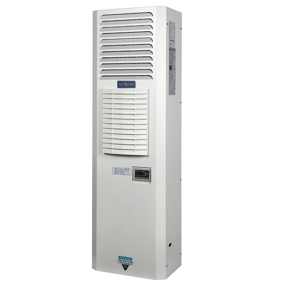 설비의 자동화 및 고집적화에 따라 제어반 내부에 고열이 발생됩니다. 에어메이저 Panel Cooler는 판넬 내외부의 열들을 에어컨 증발기를 통해 공기를 순환시켜 냉각 및 제습을 하고 발생된 수분 및 미세먼지는 WATER TANK로 흘러내려 히터에 의해가열되여 증발시키므로 판넬 내부의 전자기기 및 장치들을 보호합니다.